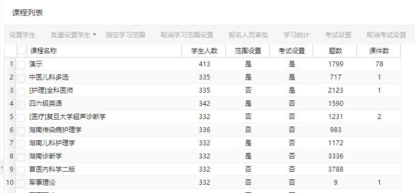 (2) 也可以选择多个课程,批量添加部门和学员。