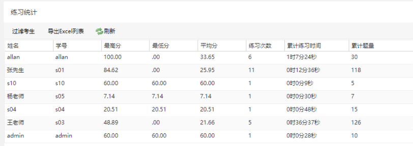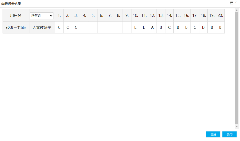 可以选择组,查看某个部门学员作答情况。