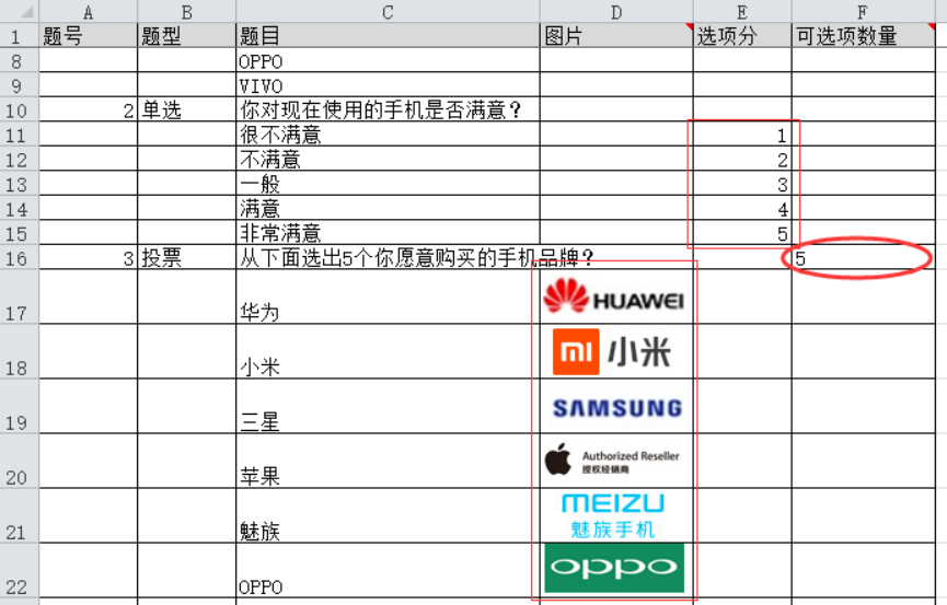 (2)按照模板样式编辑Excel文件,导入问卷题目。